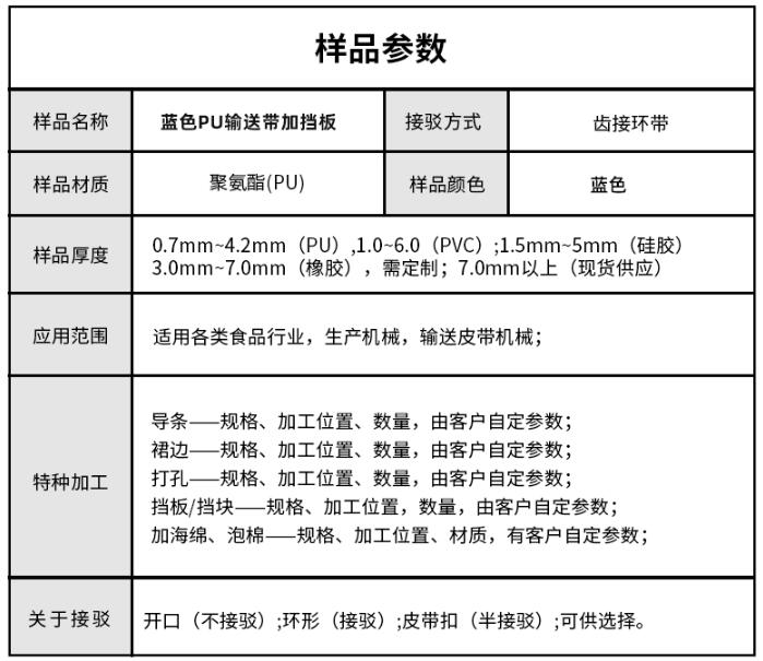 加挡板是工业皮带常见特殊加工方式之一,加挡板的作用就是可以用它去运输斜坡上易滑落的物料,范围在0°-90°,物料不会因为环境,角度问题掉落,稳定性更高,现在就来介绍三款擎川加挡板定制的工业输送皮带。