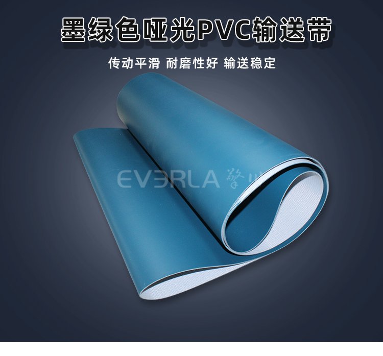 输送带产品,墨绿色哑光PVC输送带加导条耐腐蚀防滑易清洁工业皮带定制的摘要介绍: